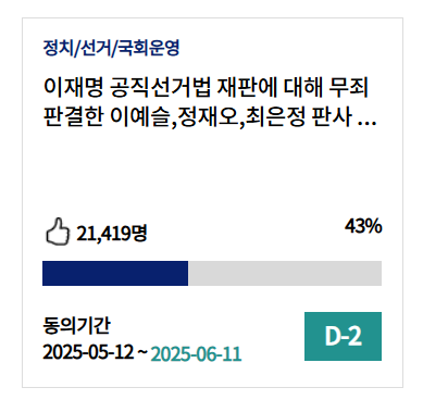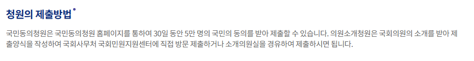 - 30일간 5만 명 동의 시 국회가 법안 심사 시작